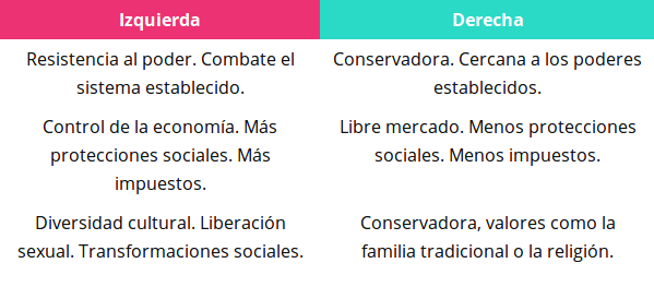 Per la seva banda, el bloc de la dreta també ha patit alteracions al llarg de la història, incloent o excloent determinades posicions polítiques segons el moment. Entre les principals característiques i valors de la dreta política estan: